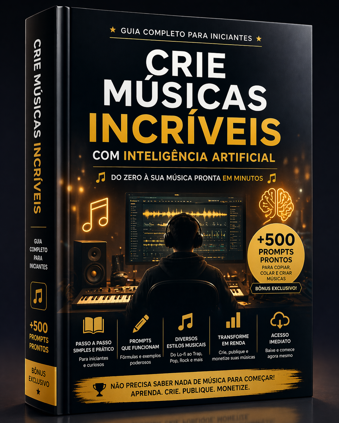 Descubra o método simples para gerar músicas completas + acesso a 500 prompts prontos para copiar e colar.